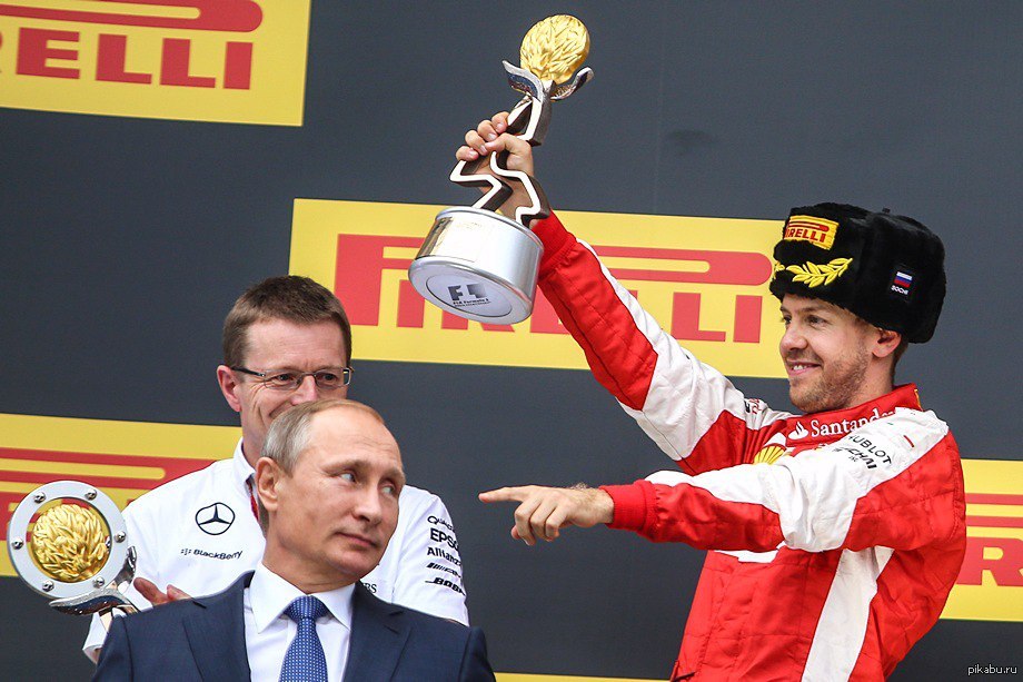 21 DeniDero Эпичное фото с награждения на Гран-при России. 10 лет назад Себастьян указывает на команду, но теперь ему на всякий случай стоит почаще оглядываться. Уж очень удачно фото получилось))) Формула 1 Гран-при России Себастьян Феттель Владимир Путин Гран-при