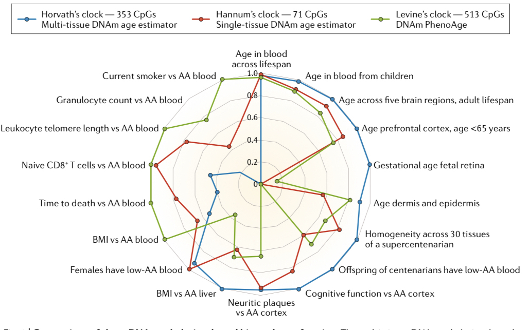 Часы Хэннама - учитывают метилирование 71 участка ДНК, преимущественно связанных с возрастными заболеваниями.