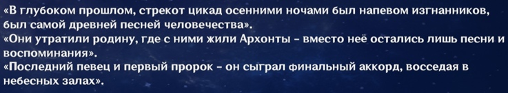 Так как же эта история связана с тиарами? Андриус за свою долгую жизнь посетил множество мест, одним из таких мест была земля за пределами Тейвата, древняя пустошь, место, где похоронена древние цивилизации фей и богов, ныне же эти места называют Тёмными Землями. Здесь он повстречал, вероятно, последнюю фею, что не подверглась проклятию. Она же и рассказала, что они были теми, кто просвещали диких людей.