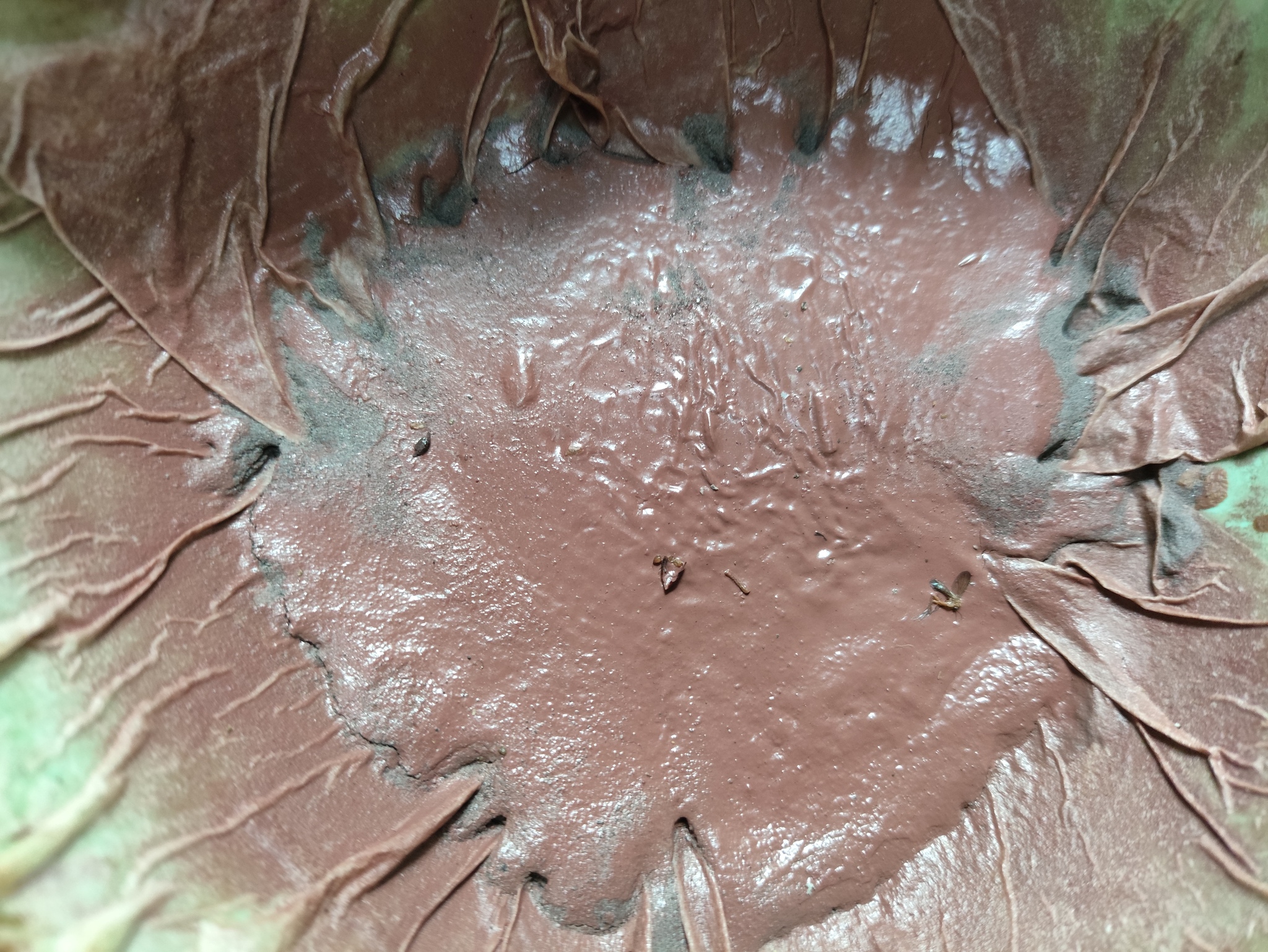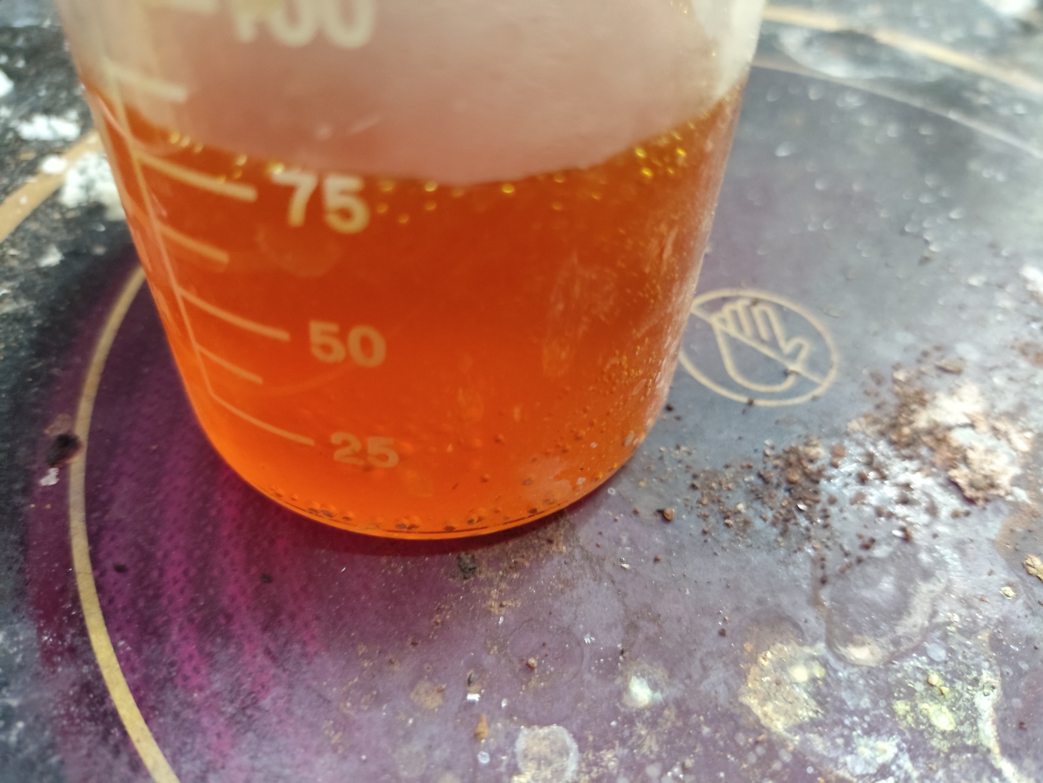 При разборе навески неизвестной породы в которой были белого цвета блёстки похожие на металл, порода после действия кислот и фильтрации окрашивалась сверху в розовый цвет. На фото коричневый оттенок но после высыхания оттенок скорее розового цвета.