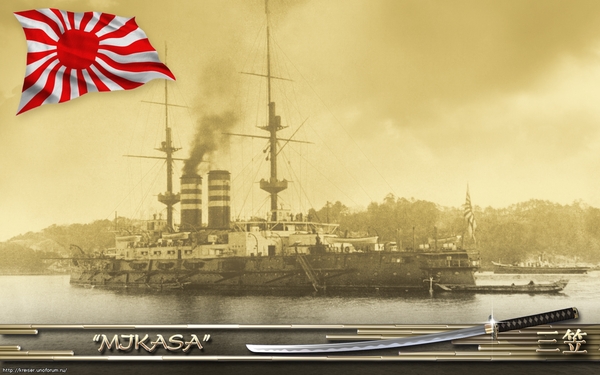 После появления "Микаса" в составе японского флота броненосцы разделялись на четыре группы: в первую входил весьма хорошо защищённый "Микаса", во вторую "Асахи", "Хатсусе", "Шикишима", в третью - "Фудзи" и "Яшима", в четвертую - устарелые "Чин Иен" и "Фусо". Таким образом, к началу 1903 г. броненосный флот Японии из шести новых кораблей и двух устаревших уже был сосредоточен в ее водах, и на боевую подготовку до начала их вступления в войну оставался еще целый год. Корабль являлся флагманом адмирала Того.