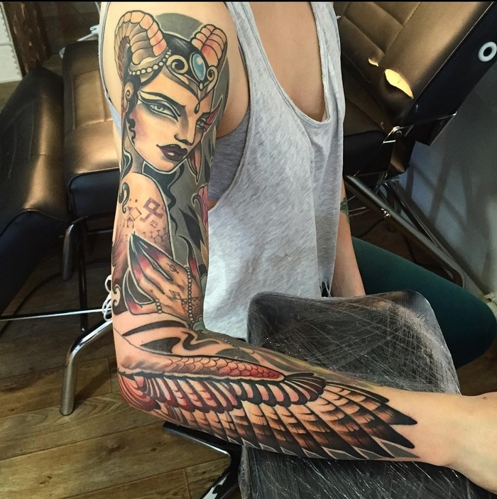 28 AnnaSaf Лига Любителей Татуировки Эскиз для рукава и фото в процессе 4 года назад [моё] Рисунок Эскиз татуировки Сатир Тату Ещё 0
