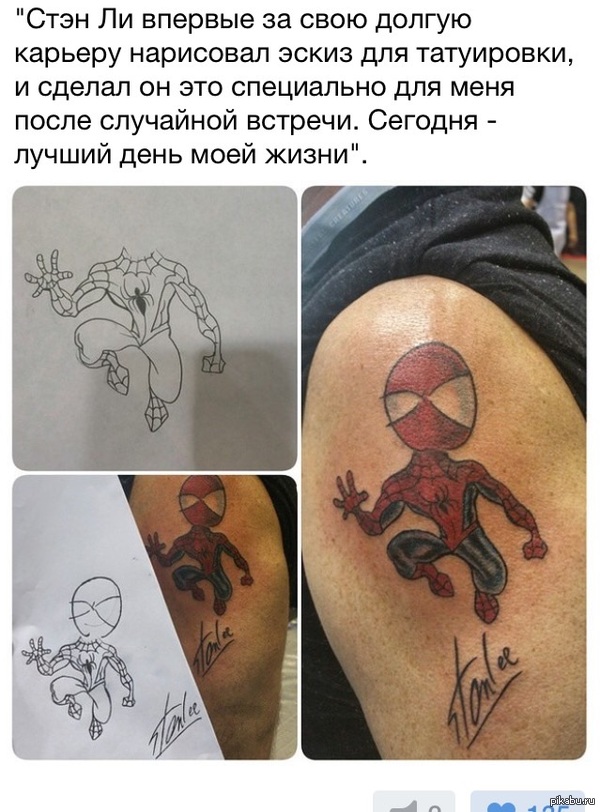 239 somova Эскиз для тату Стэна Ли. Кому-то очень повезло. 10 лет назад Не Мое Тату Эскиз Человек-паук Marvel Стэн Ли Комиксы