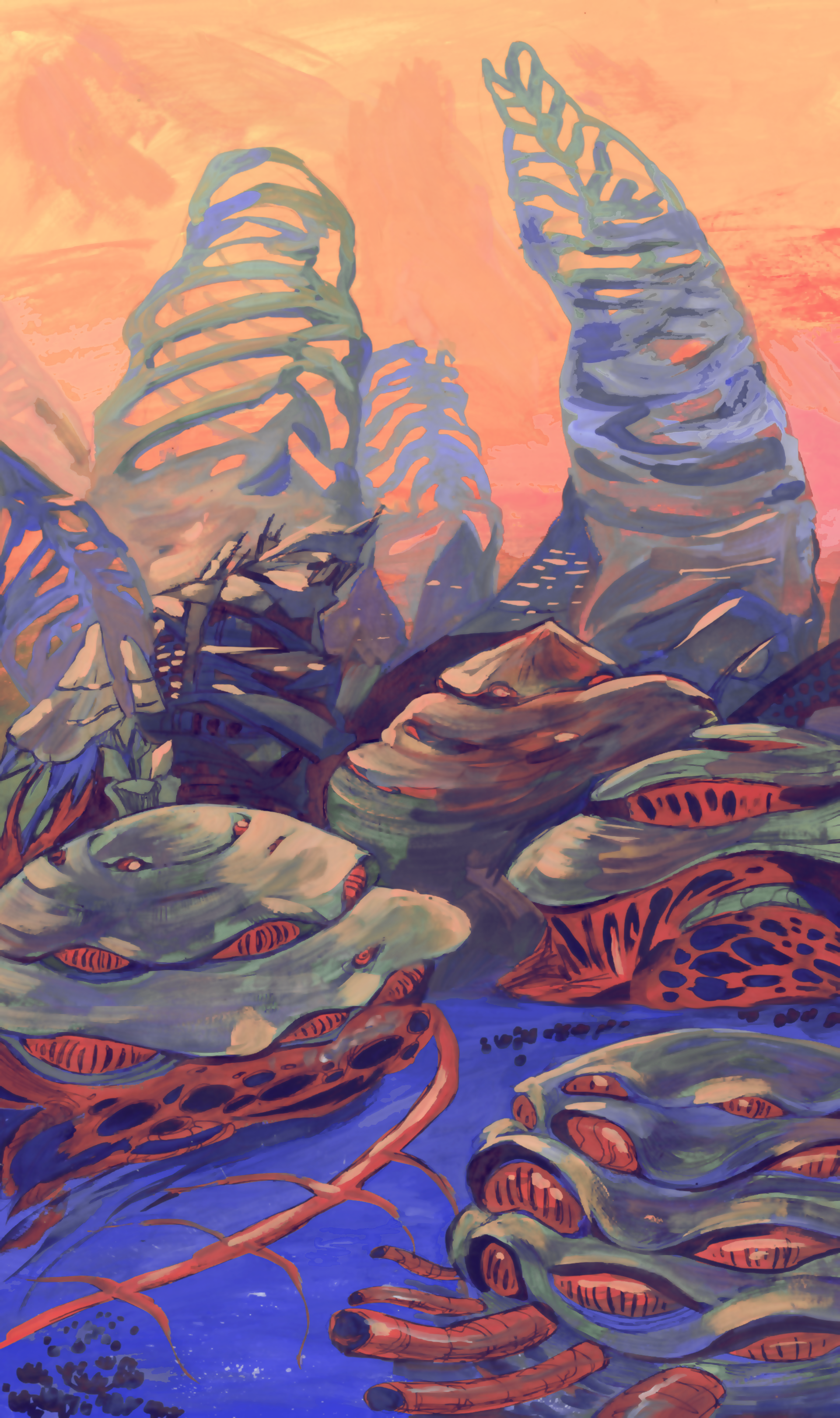 Эскиз панорамы к моему диплому "Земля саламандр" и немного хвастовства