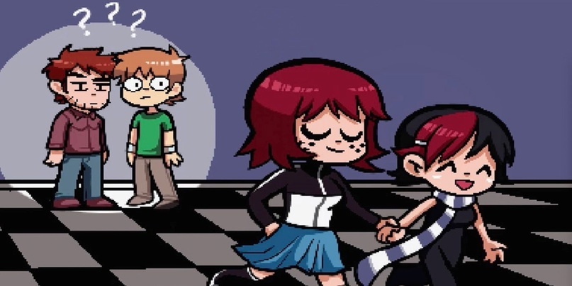 К слову о концовке… есть подробный разбор того, почему первоначальная концовка фильма подходит ему больше. Прочитать вы её можете тут (https://dzen.ru/a/Yfhab7HiZRz4Cene) в целом я согласен с автором, разве что добавлю, что не только Рамона не прошла свой путь преображения, но и Скотт, а тот что прошёл должен был сблизить его с Найвз, а не с Рамоной. Не соглашусь я с его выводом, концовку заменили не по прихоти автора оригинала, а потому что подобная концовка обесценивала бы действия самого Скотта, который просто зря сражался всё это время и вернулся на исходную.