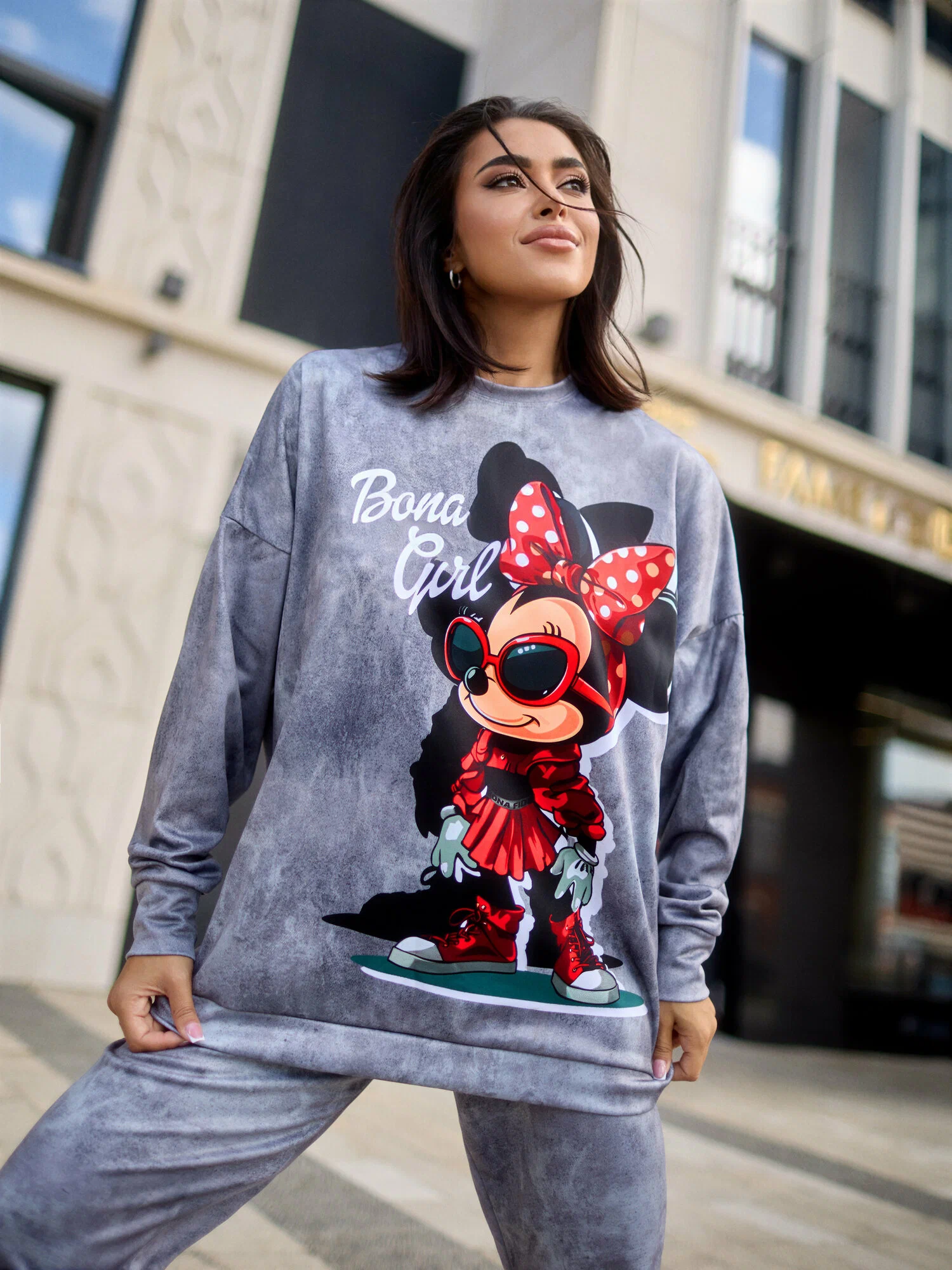 Свитшот женский оверсайз утепленный с принтом Микки Маус непременно понравится девушкам, которые ценят комфорт во время носки и найдет широкое применение в повседневной жизни. Толстовка с имитацией варенки с длинным рукавом станет базовой вещью в гардеробе взрослых девушек. При пошиве использовался приятный телу теплый трикотаж, обеспечивающий полный комфорт и свободу движений. Материал эластичный, отличается устойчивостью к износу. Молодежный осенний свитшот с объемными спущенными рукавами обладает удобным кроем, оснащен манжетами на рукавах, легкой резинкой по низу изделия. Длинная спортивная кофта с декоративным рисунком подойдет для девушек высокого и невысокого роста. Свободная модель выполнена из мягкого материала с легким начесом, отличается устойчивостью к износу, надолго сохранит первозданный вид даже при максимально активной носке. Ссылка на такой