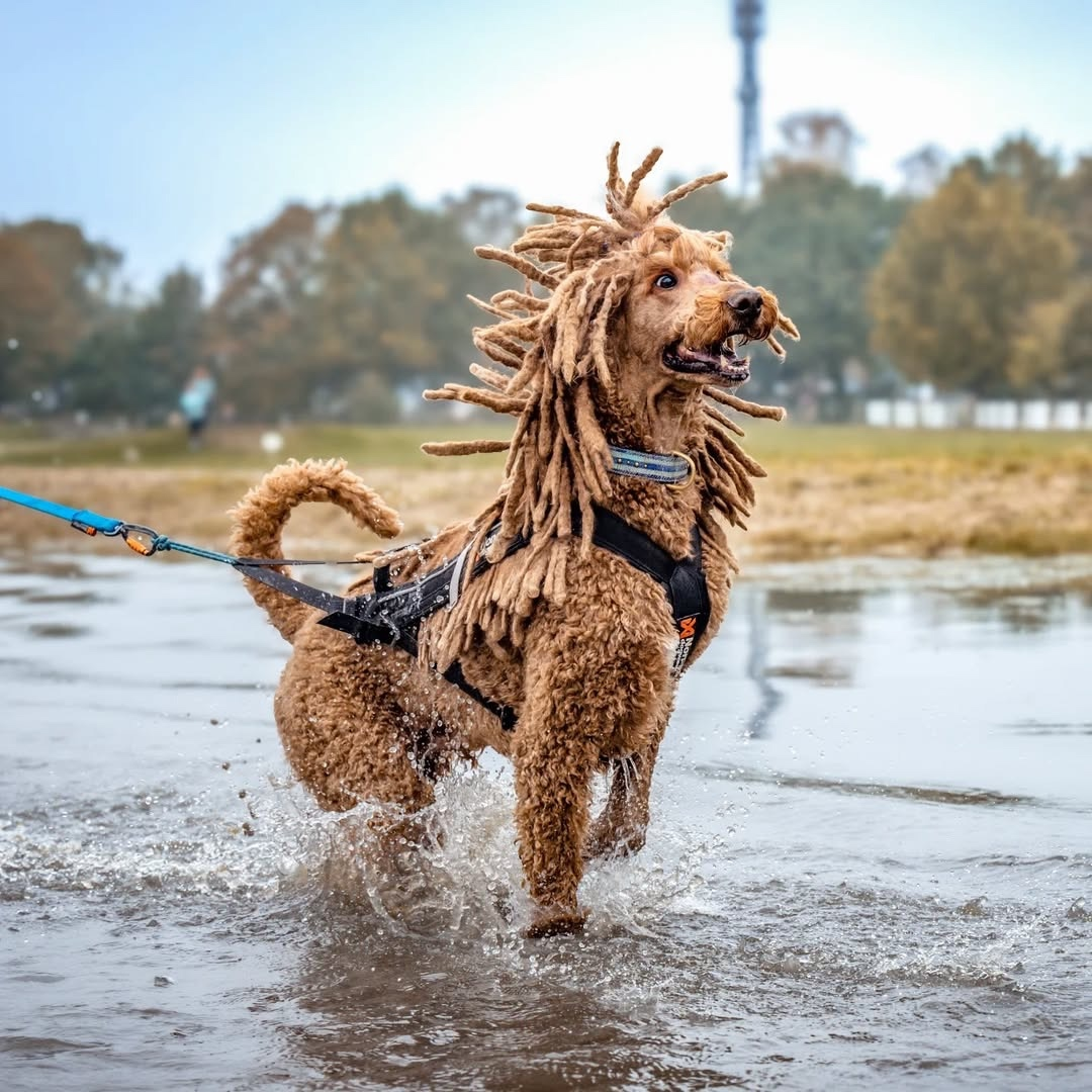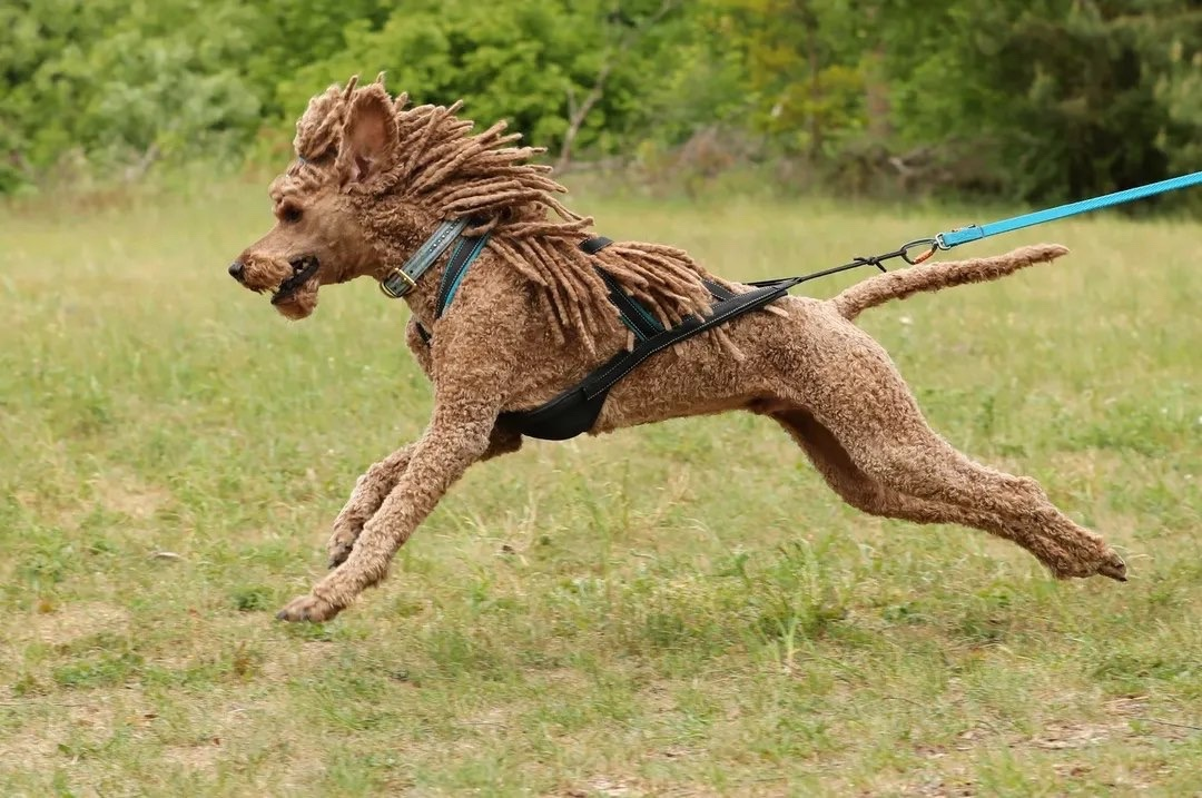 Стандартный пудель Mydrm Leroux Tophat в великолепной стрижке. Занимается ездовым спортом.