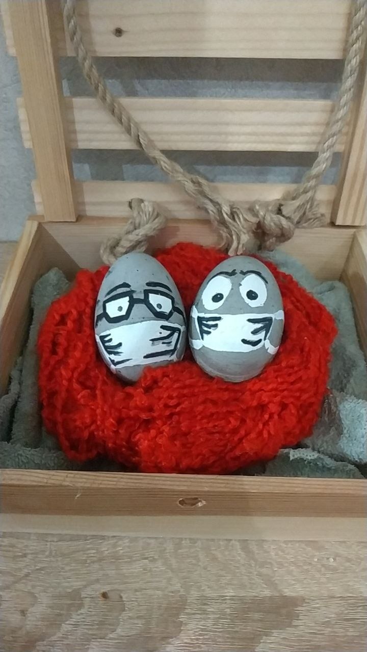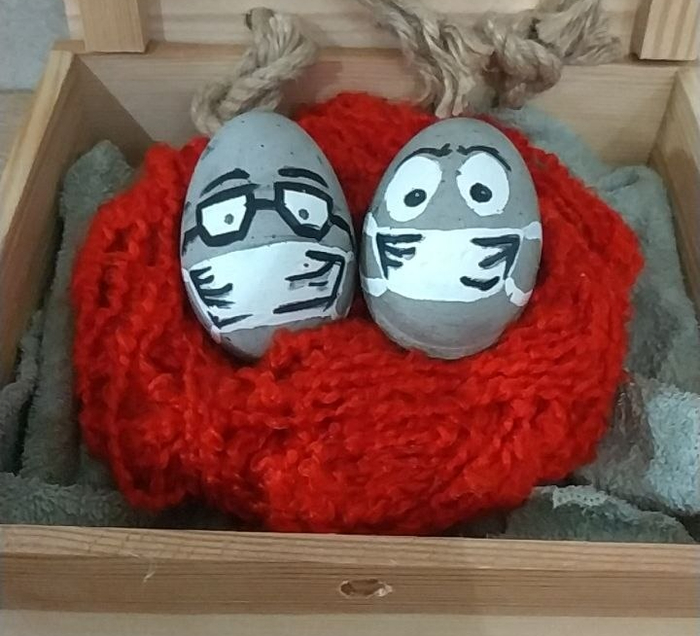 Яйцо получилось аккуратное, склейка почти совпала. Немножко обработали шкуркой шовчик и вуаля.Теперь осталось разукрасить.От классики не отходили, залепили картинку от производителя. Да и к теме больницы она больше подходит...
