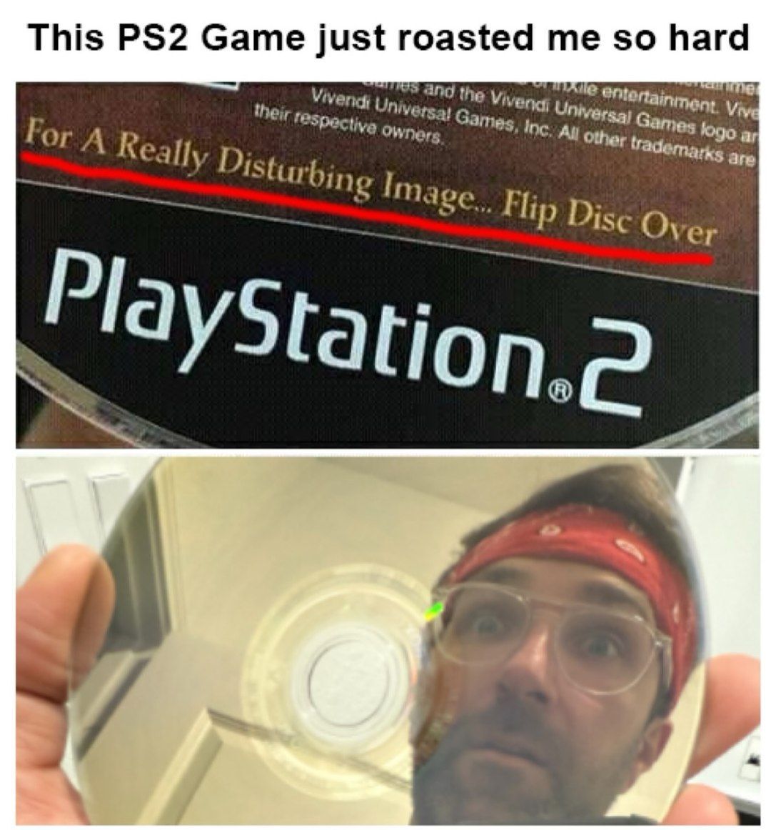 12 Lio2142 Эта игра на PS2 здорово подшутила надо мной 7 месяцев назад - Для наиболее отвратительного зрелища... Переверни диск Юмор Игры Playstation Playstation 2 Диски Отражение Перевод 2 Ещё 0