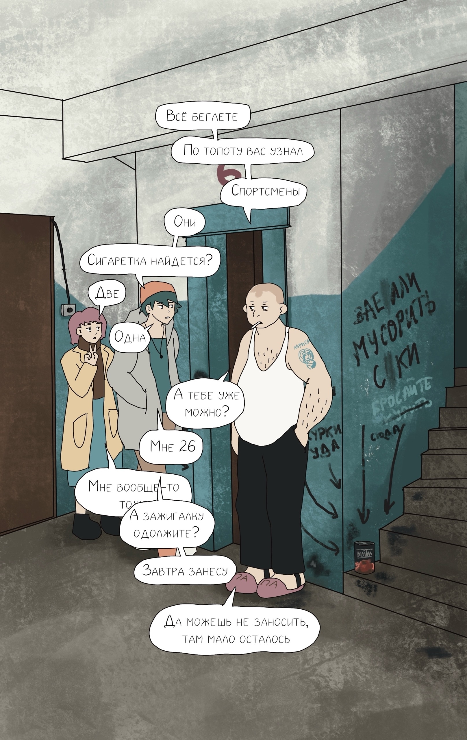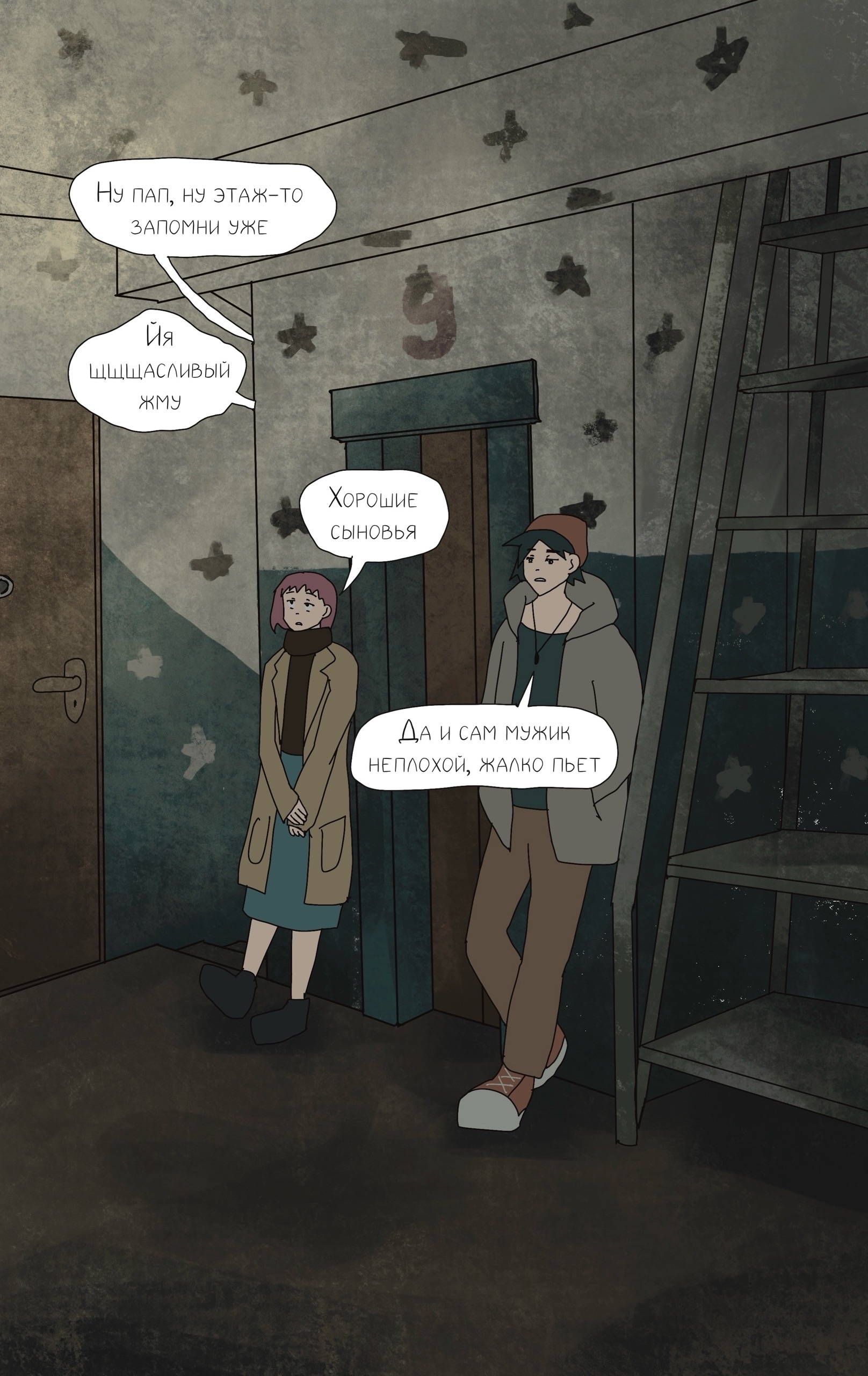 Короткий комикс об обычной прогулке по обычным этажам обычной девятиэтажки.
