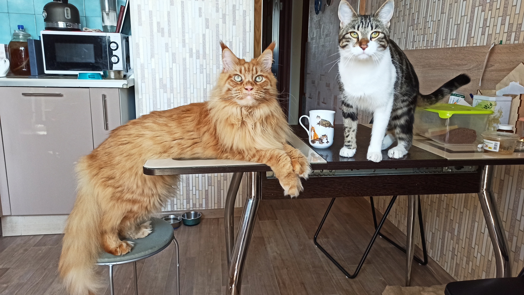 Ооо у нас был такой же стол, до барной стойки))) котеи шикарные))))