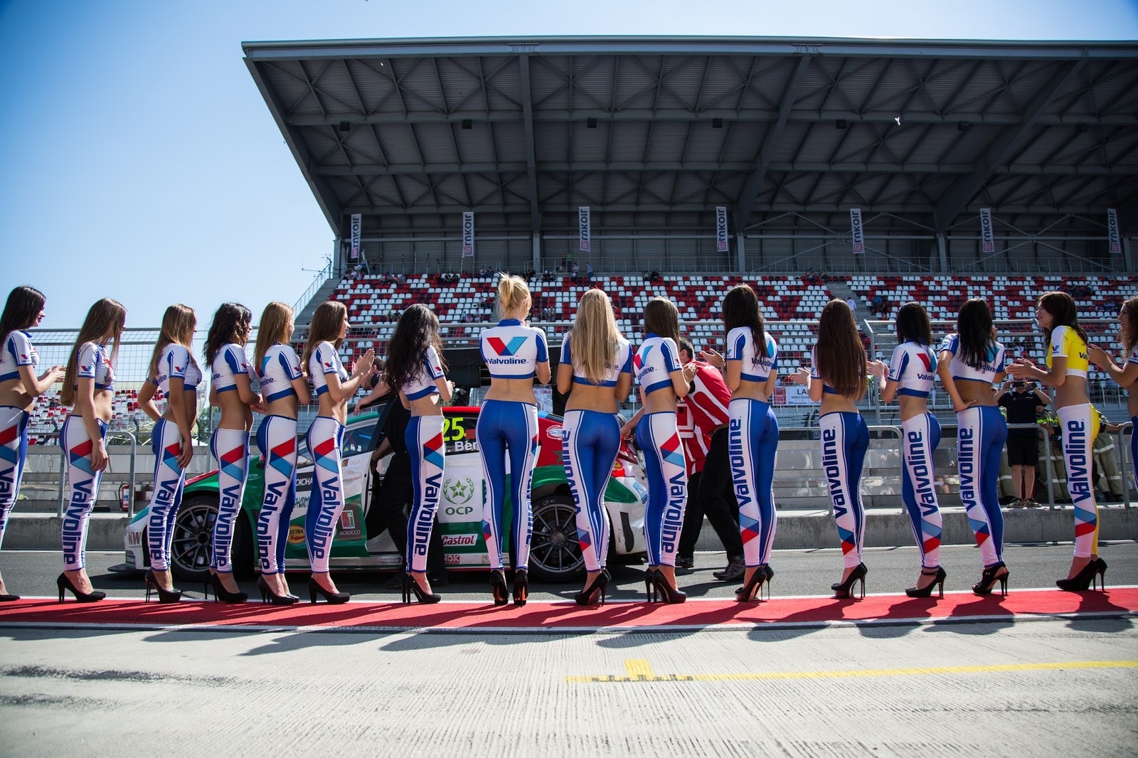 Пилот занес деньги в кассу - всё, на машине должны быть спонсорские наклейки. И не просто так, а на самом видном месте. Кто их клеит обычно? Правильно, человек, отвечающий за пиар в команде: Катерина Кукушкина из команды B-Tuning в положении "голова в цветах, попа в мыле" перед стартом четырехчасовой гонки.