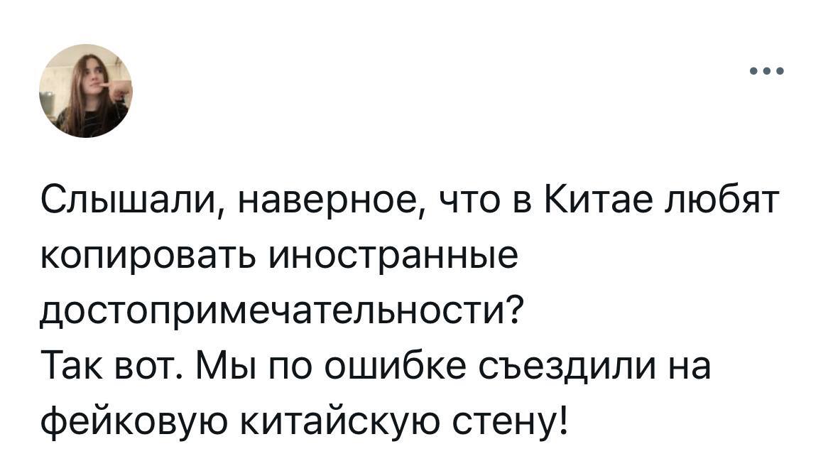 160 terebiata Юмор для всех и каждого Это была качественная реплика, сшитая на той же фабрике, только ночью 8 месяцев назад Телеграм канал - рофлем Юмор Скриншот Китай Великая китайская стена Подделка Telegram (ссылка) 8 2 2 1 Ещё 0