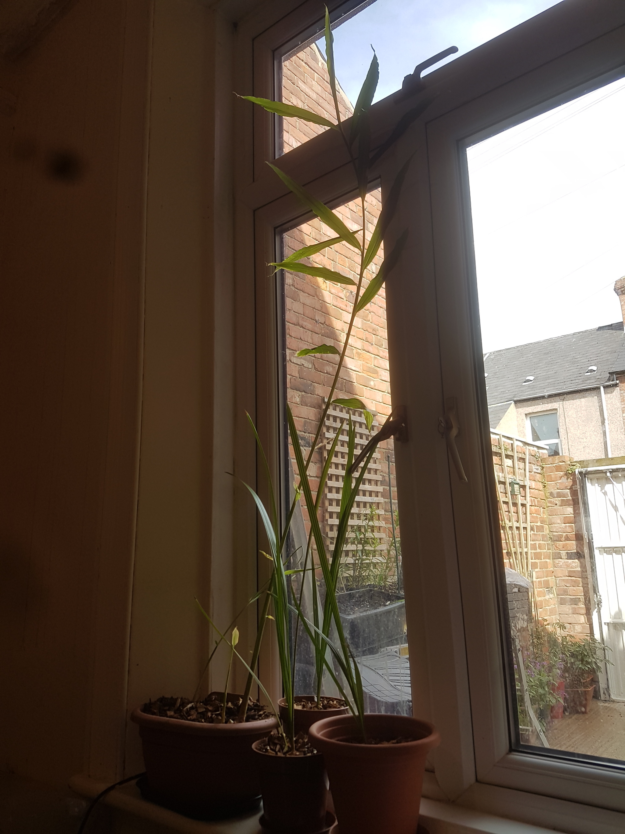 У меня на подоконнике тоже рос имбирь. Потом вымахал высоким и без подпорки сломался пополам.