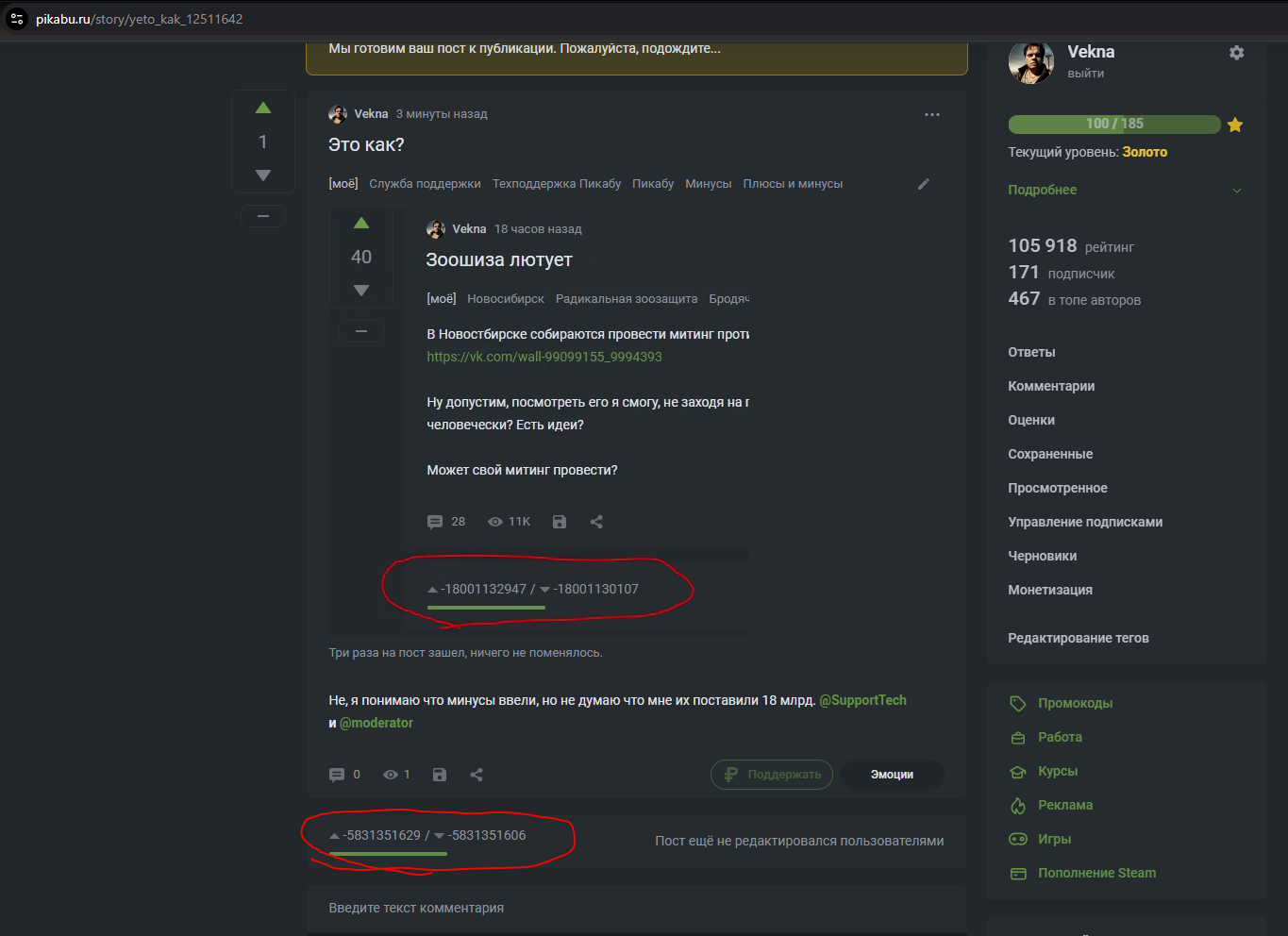 Не, я понимаю что минусы ввели, но не думаю что мне их поставили 18 млрд. @SupportTech и @moderator