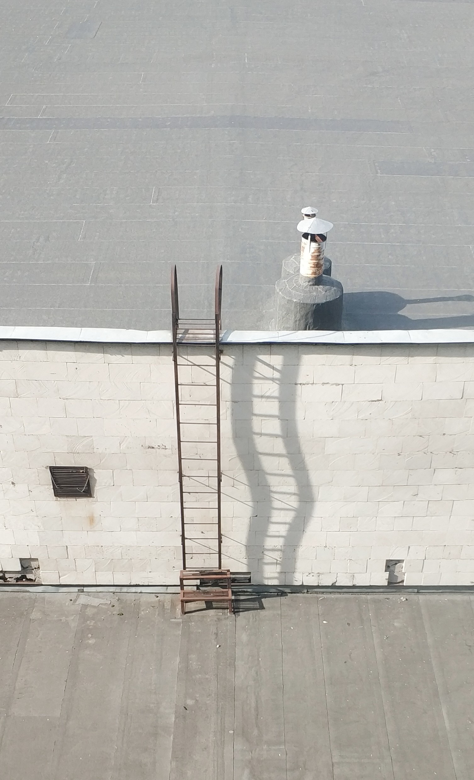 Фото сделал из окна т.к. привлекла странная тень от, на первый взгляд, прямой лестницы.