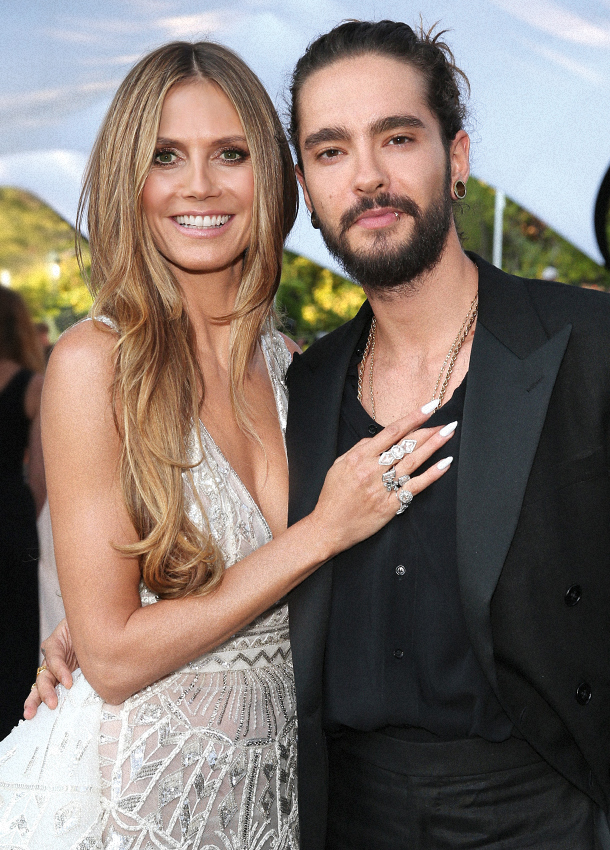 Хайди Клум -супермодель и Бил Каулитц-гитарист Tokio Hotel , брат близнец солиста этой группы. Разница в возрасте 17 лет, если я не ошибаюсь.