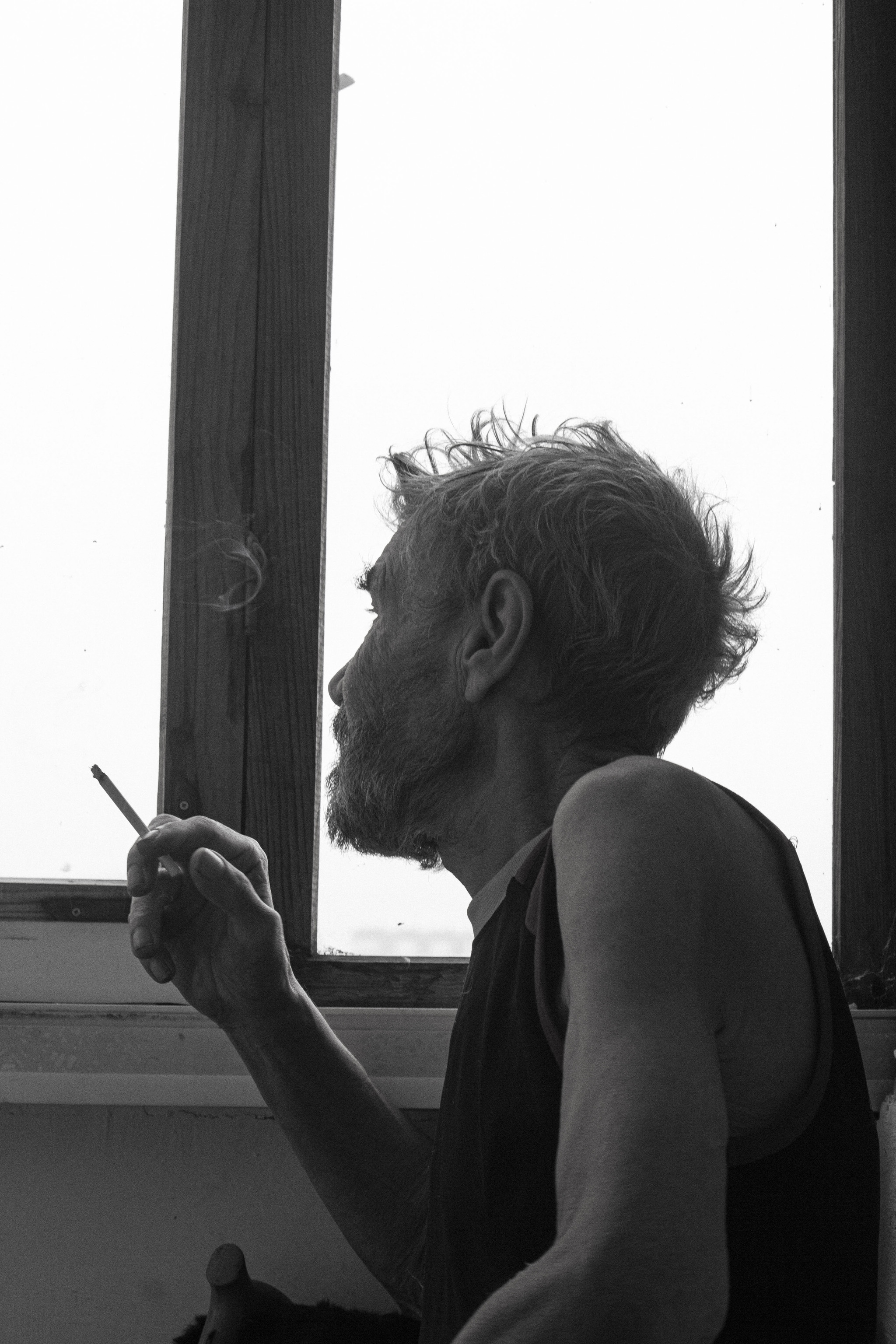 К сожалению, поставленный в ноябре диагноз - рак на IV стадии, не позволяет ему сейчас так же сидеть и курить задумчиво у окна. Прямо скажу, на фото ниже он не сильно-то хотел, чтобы я его щелкал - говорил, мол, сейчас, выздоровею, вес обратно наберу, пофоткаешь. В общем, едва ли. Но я рад, что сделал хотя бы эти снимки.