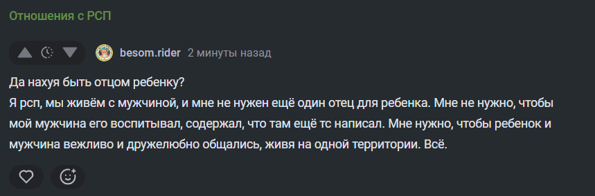 Так вот парни. Вот вам прямой пример такой женщины, с которой у вас отношений НЕ ВЫЙДЕТ! Повторюсь. В семье нет места дележу. Мой ребёнок, твой ребёнок. Семья - это два родителя. Новый мужчина в семье - это либо отец, либо воспитатель. Называйте как хотите. Суть от этого не измениться. В воспитании ребёнка участвуют ОБА РОДИТЕЛЯ. НА РАВНЫХ. Если в таких отношениях кто-то начинает открещиваться от обязанностей воспитания ему нужно что угодно, но только не здоровые отношения в семье. Если женщина отодвигает вас от воспитания, то как показывает практика вы в данных отношениях только кошелёк. И закончатся ваши отношения весьма печально. Таких историй на пикабу море. В жизни я тоже таких историй знаю не мало.