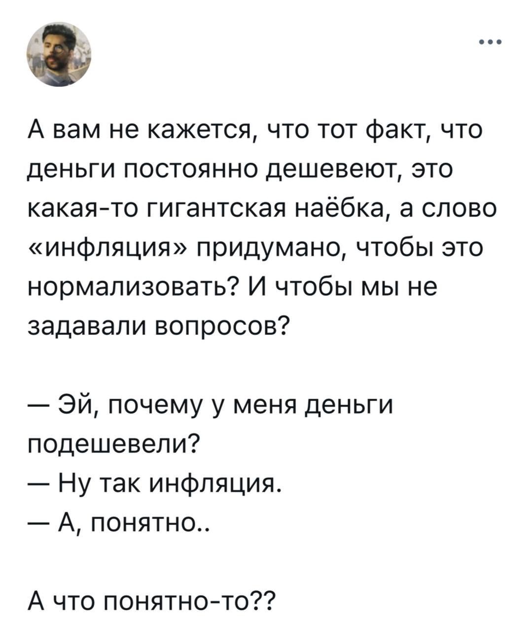 662 terebiata Юмор для всех и каждого Это не баг, а фича 8 месяцев назад Телеграм канал - https://t.me/roflemem/5082 Юмор Скриншот Инфляция Telegram (ссылка) Мат 18 6 3 2 1 Ещё 0