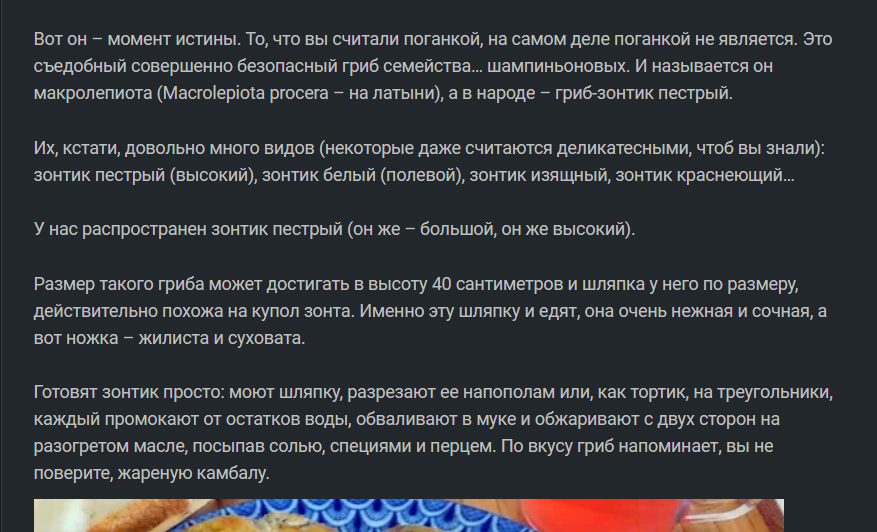 Вообще, есть заповедь грибника – не знаешь гриб, не уверен, что можешь его правильно идентифицировать – не бери. Но с таким подходом мы зонтик точно не попробуем, а ведь это звучит: съесть зонтик! Поэтому давайте разбираться. Ничего сложного тут нет.