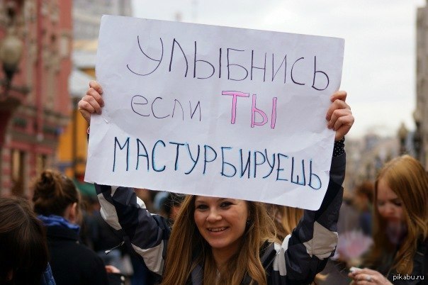 2. Аа, может быть потому-что на её фоне проходит какой-то митинг и она совсем не в тему со своим плакатом?