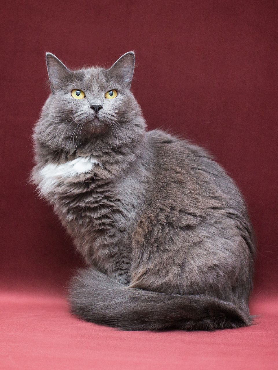 Полуторогодовалая. Невероятно пушистая, с красивой серо-голубой шерсткой и взглядом настоящей королевы.