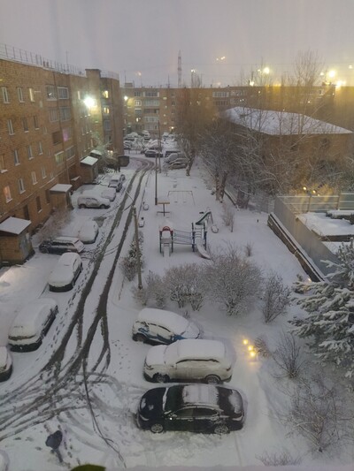 Часов пять назад было +14, а сейчас -2 и метель. Екатеринбург.