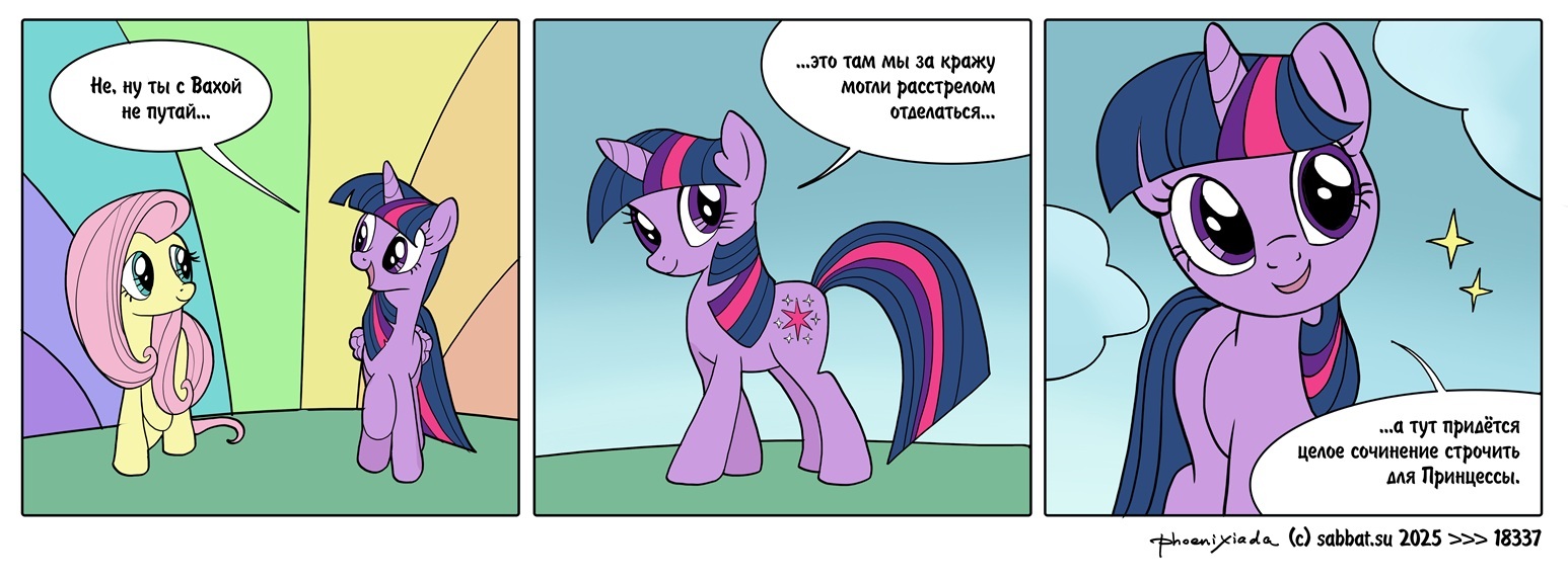 "Не, ну ты с вахой не путай. Это там мы за кражу могли расстрелом отделаться, а тут придётся целое сочинение строчить для Принцессы"