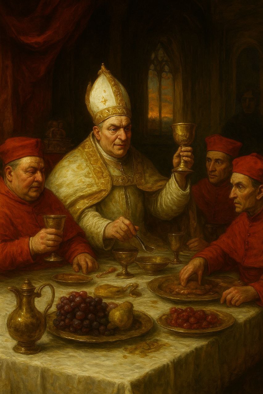 6 августа 1503 года: Александр VI и его сын Чезаре Борджиа присутствовали на ужине у кардинала Адриано да Корнето (также известного как Адриано Кастеллези) в его дворце в Ватикане. Этот ужин стал отправной точкой для многочисленных слухов. Согласно некоторым источникам, ужин был организован для обсуждения политических дел, но после него оба Борджиа почувствовали недомогание. Чезаре, будучи моложе и крепче, выздоровел, хотя и с трудом, в то время как папа начал угасать.