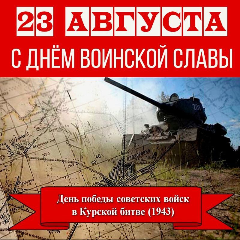 23 августа, день разгрома советскими войсками немецких войск в Курской битве, является одним из дней воинской славы России. Белгород, Курск и Орёл стали первыми городами России, которым присвоено почётное звание «Город воинской славы». А Белгород и Орёл стали городами «Первого салюта».