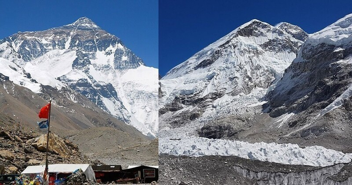 Во-вторых, это не лестница в небо, где первая ступенька находится на высоте 0 метров, а последняя ровно на 8848 м. Эверест имеет форму трёхгранной пирамиды, где южный склон более крутой. На южном склоне и рёбрах горы снег и фирн (снежный нарост) не удерживаются, вследствие чего склоны все голенькие. Высота пирамиды от подножия до вершины всего около 3550 м. Так что визуально, если вы добрались до подножия, перед вами будет всего 3-километровый огрызок на фоне куч мусора и ушлых шерпов, ну и …потрясающих видов на Гималаи. Даже если мерять от самого плато, то высота будет 5200 м., что, например, технически ниже, чем Килиманджаро.