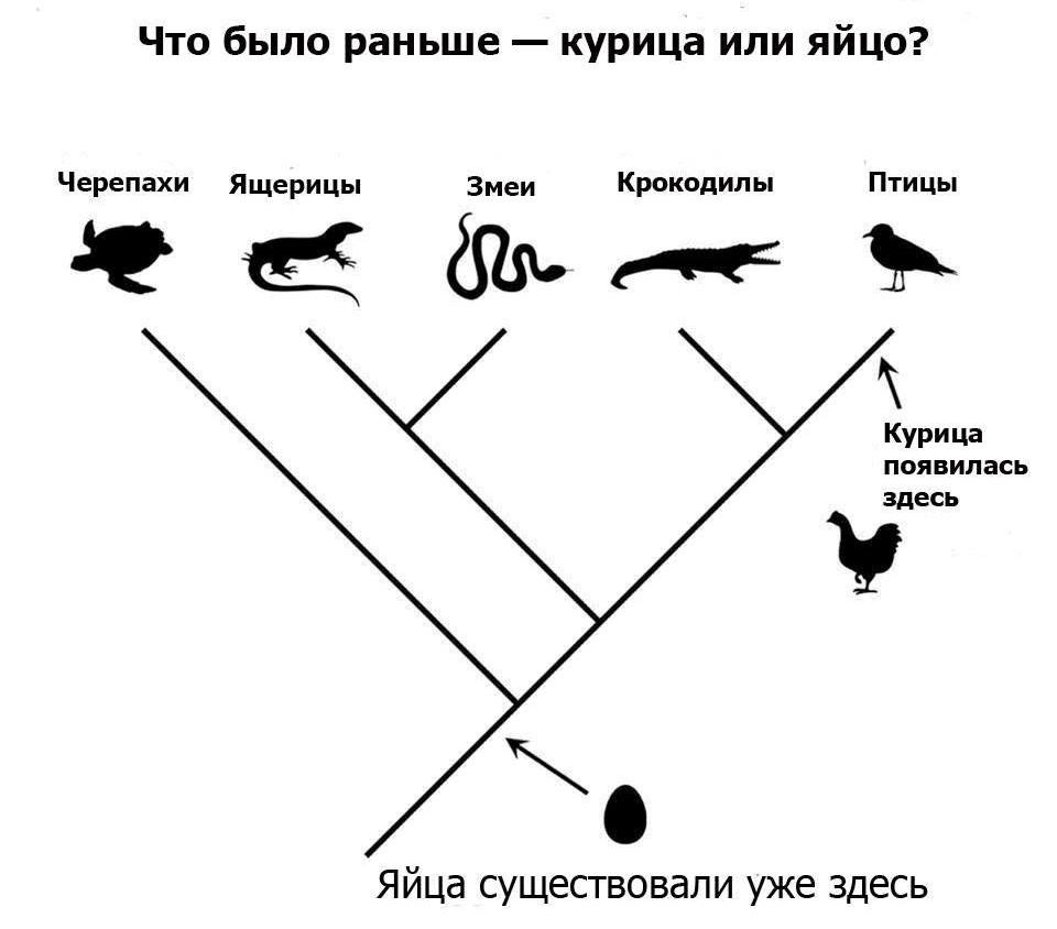 Птицы произошли от ящеров размножавшихся тоже яицами. , так что по логике в какой то момент предок курицы, еще не считавшийся курицей снес яйцо из которого появилась первая курица