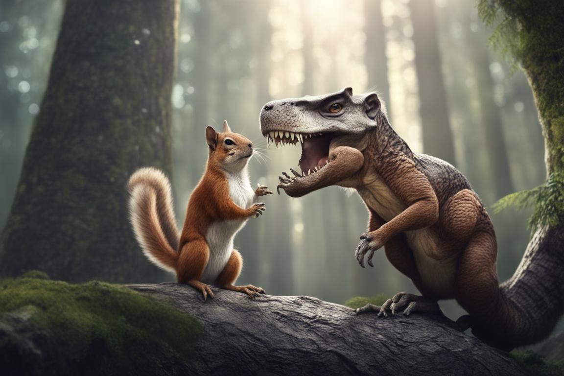 Пришлось выкручиваться. Клыки начал отращивать, мозг потихоньку увеличил, а там стайное поведение внедрил. Как здорово мы закидывали тиранозавра шишками! Эта зверюга так забавно материлась, лапками передними размахивала, а достать на дереве не могла…