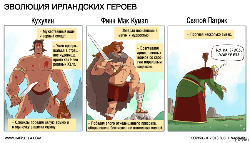 689 Srslly 12 лет назад Эволюция Ирландских героев. Герои Ирландия Святой Патрик Кухулин Финн Мак Кумал