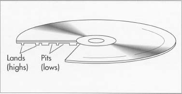 Информация, записанная на компакт-диск, имеет вид спирали из углублений, или «питов», нанесенных на обратную поверхность диска. Размер одного пита обычно составляет около 500 нм в ширину и от 850 до 3500 нм в длину. При этом глубина пита достигает отметки в 100 нм. Расстояние от каждого пита до соседних обычно равняется около 1,6 мкм. Это расстояние называется лэндом. Считывание информации с компакт-диска происходит с помощью лазерного луча, который образует световое пятно с диаметром около 1,2 мкм, что на 0,4 мкм меньше расстояния между соседними питами. В том случае, если луч «упирается» в лэнд, приемный фотодиод фиксирует сигнал максимальной интенсивности и распознает его как логическую единицу. При попадании лазера на пит, свет рассеивается и поглощается, а затем он отражается от поликарбонатной подложки. В таком случае фотодиод фиксирует свет меньшей интенсивности, и он распознается как логический нуль.