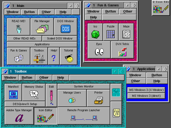 Впоследствии свет увидела DESQview/X, которая использовала X Window System. Для неё существовало 3 оконных менеджера: X/Motif, OPEN LOOK, и twm. Ко всему прочему, она позволяла работать с MS-DOS и 16-ти битными Windows приложениями, которые запускались по сети, как с приложениями для X.