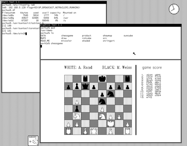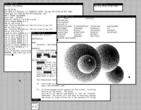 Чуть было не забыл о стоящем особняком SunTools, который являлся графическим интерфейсом системы SunOS. Эта система поставлялась на первое и второе поколение рабочих станций и серверов производства компании Sun. Первое поколение Sun-систем было выпущено в 1982 году, а второе - в 1983. Сама операционная система была построена на базе BSD разновидности UNIX.