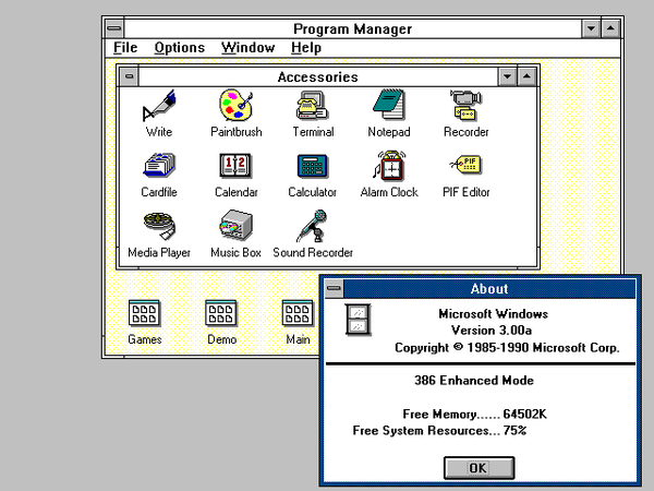 В мае этого же года свет увидела одна из самых удачных операционных систем Microsoft'а, снискавшая довольно большую популярность - Windows 3. В этой версии был значительно улучшен графический интерфейс, было реализовано централизированное управление системными настройками, реализована поддержка макросов и добавлена игра «Косынка». Это важный момент в истории компании и ОС. Большинство стандартного программного обеспечения наследовалось от предыдущих версий. Windows 3.0 была последней версией Windows, которая, по заявлениям Microsoft, поддерживала полную совместимость со старыми приложениями Windows. Чуть позже в специальном дополнении были добавлены расширения для работы с мультимедиа. Достоверно известно, что Windows 3, по крайней мере версии 3.11, до сих пор используются в некоторых специфических системах.