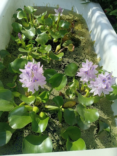 У меня открытые аквариумы с гуппями и к весне все гиацинты умерли. Фото с моими цветущими прошлогодние. У меня по всему огороду понатыкана была. Плодилась зверски.