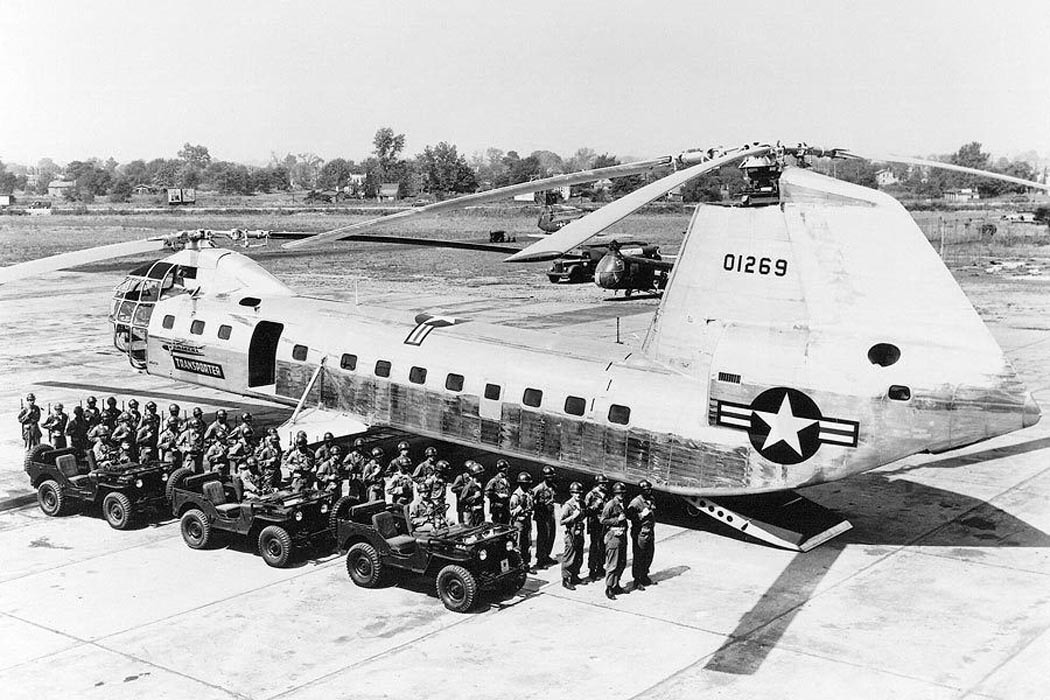 На начальном этапе проектные работы финансировались ВВС США, позже к программе подключилась и армия. ВВС хотели получить поисково-спасательный вертолет большого радиуса действия, затем Н-16 стали рассматривать как замену "Мулу" и "Лошади", оставив за ним и поисково-спасательные функции. Разработка самого большого в мире вертолета затянулась. Впервые прототип YH-16 продемонстрировали публично в сентябре 1953 г. в аэропорту Филадельфии. На машине стояли поршневые звездообразные двигатели воздушного охлаждения Пратт энд Уитни R-2180 мощностью по 1650 л.с. каждый. Несущие винты - трехлопастные.