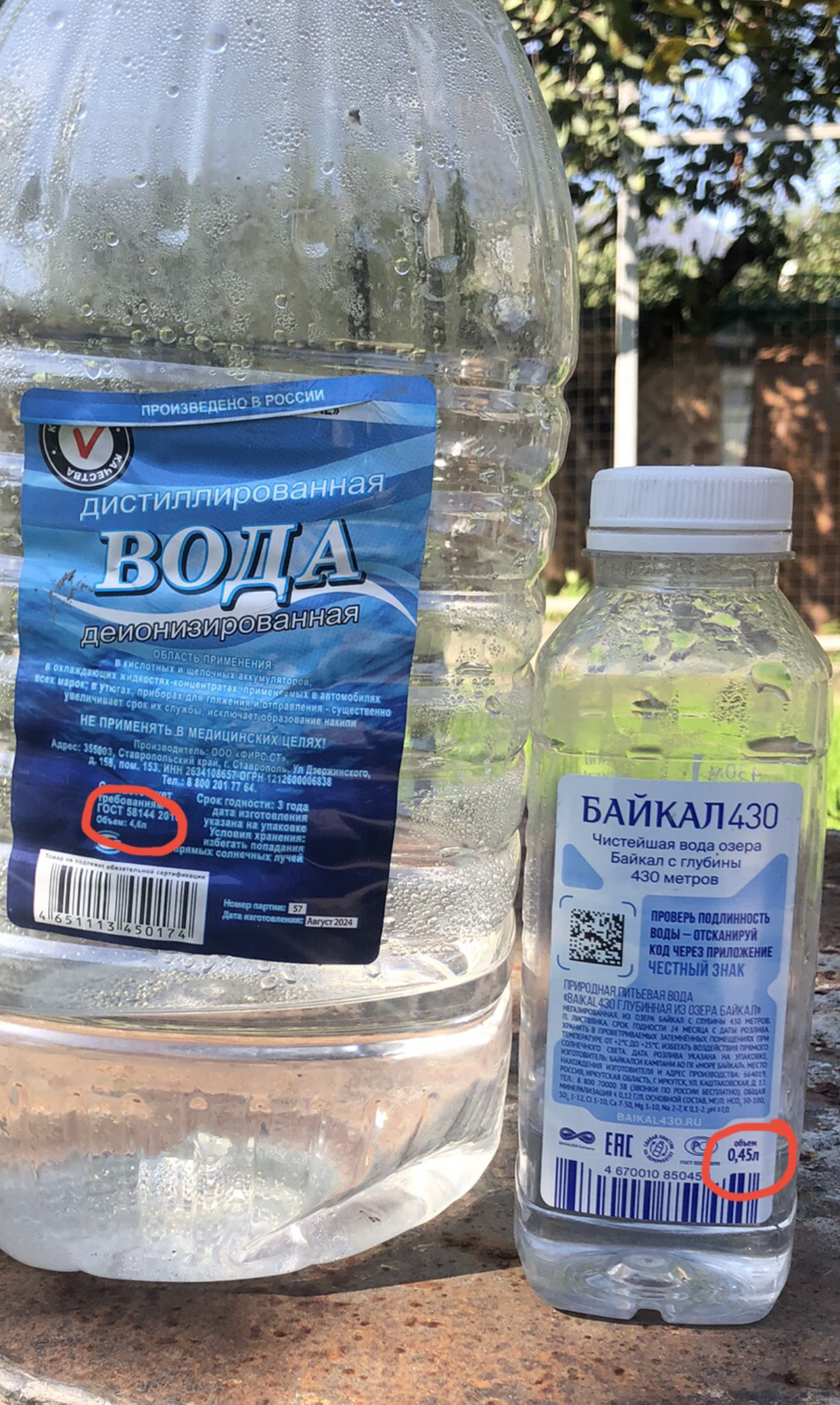 Думал 5л и 0,5л, сейчас быстро отмерею, а оказалось 4,6л и 0,45л. Что за иррациональные числа? Была еще типа полторашка где-то на 1,45л, я её в расстроенных чувствах зафинтилил куда-то. Кто это придумал? А главное нахуя? Платишь ведь все равно больше. Вот заплатишь проститутке за час, а она через 56 минут и 34 секунды скажет гудбай. Согласен, неудачный пример, но вы поняли. Ладно мне особая точность не нужна была, свои шесть литров я отмерил, но хотел сделать все по человечески. Задолбали подгонять обьем под цену. Итак хаос кругом. Я случайно заметил, что пятилитровка какая-то маленькая и начал изучать этикетки.Чтоб тот, кто это сделал срал и срал. Одно слово: