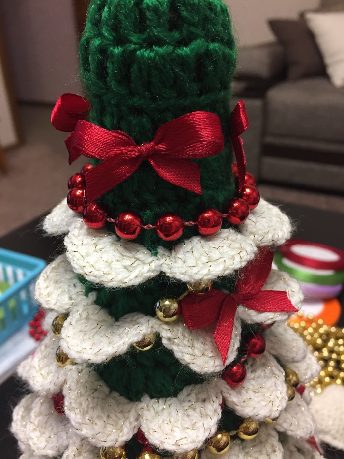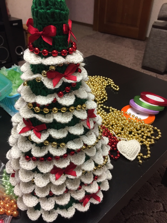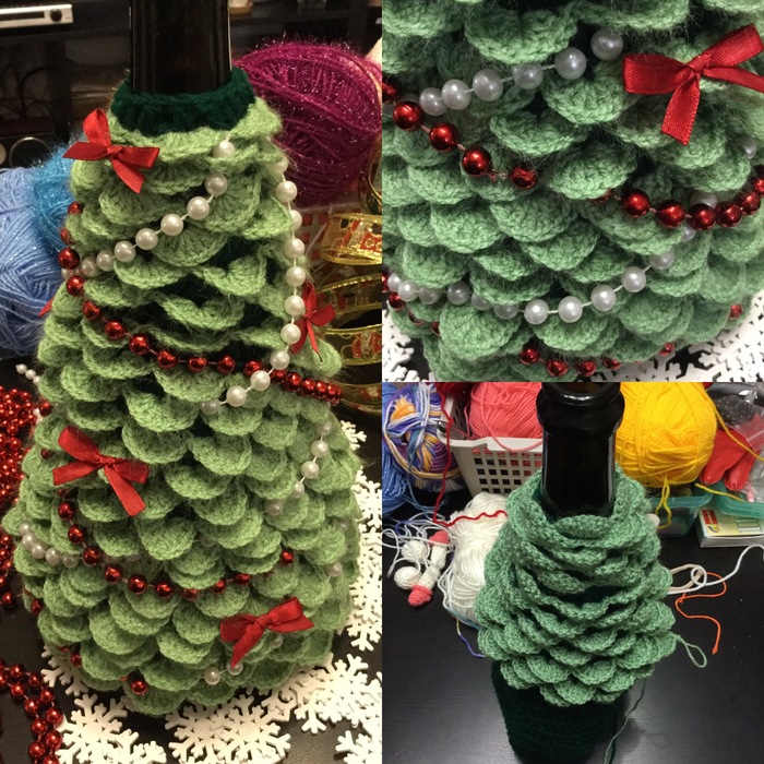 Доброго времени суток, как и обещала, выкладываю фото вязанной ёлочки для бутылки шампанского. Ёлочки у меня разные, одна в белом, вторая в зелёном цвете. Этим работам два года, в этом году решила заняться другими подарками к НГ. Позже расскажу и покажу. А вам какая ёлочка понравилась, в белом или в зелёном? Мои работы можно посмотреть @boutigue_de_creation