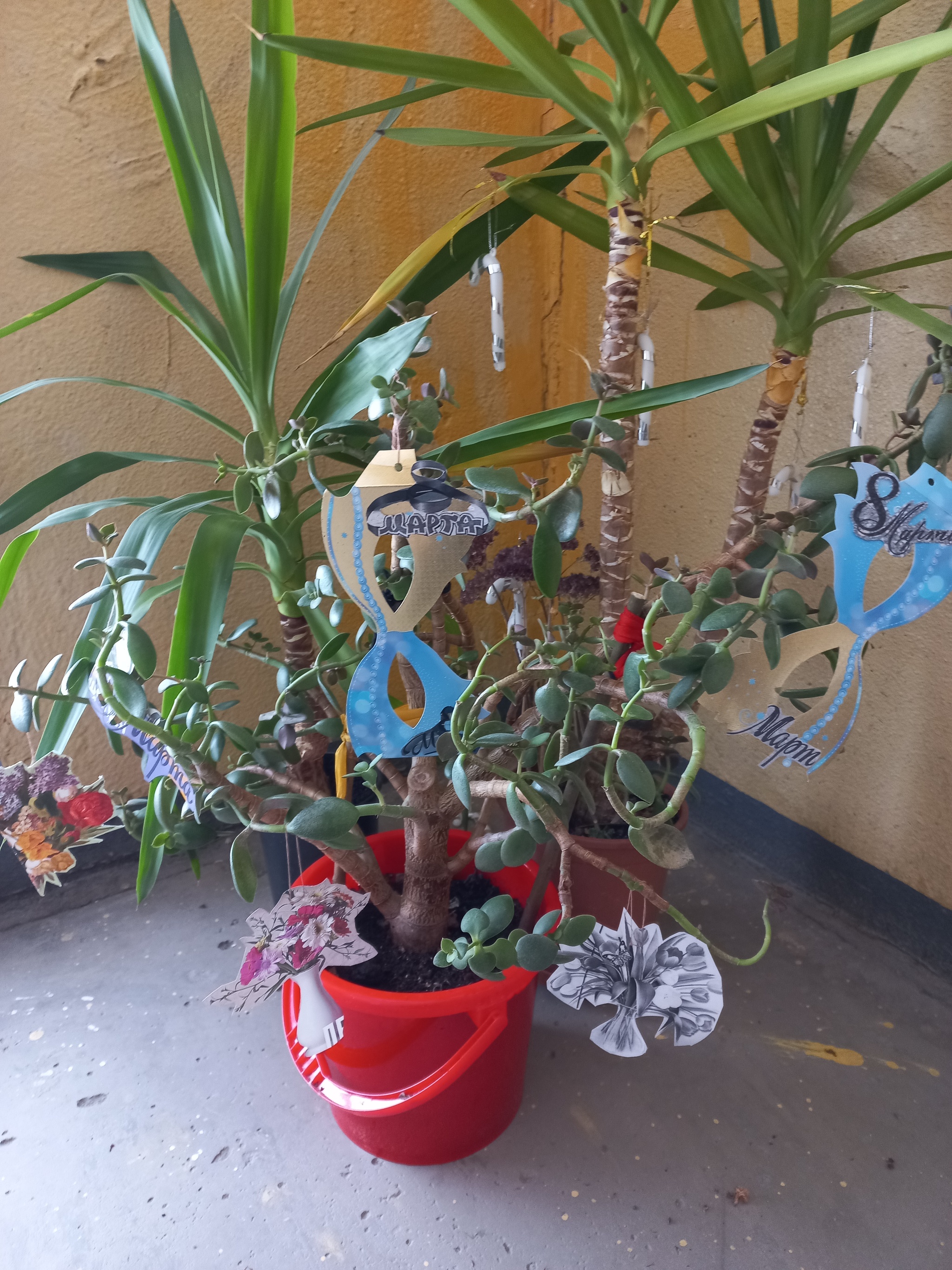 Вот что получилось. Ёлка (не совсем ёлка, но растение зеленое) в подъезде (надеялась на поддержку соседей).