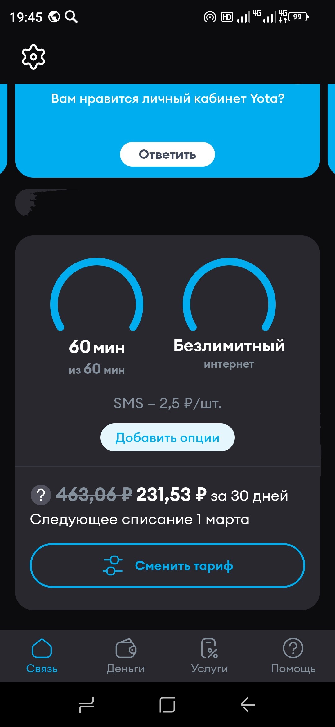 СИМ-карта Yota уже 5-6 лет минутами и гигами почти не пользовался тут поехал по работе в другой регион решил скачать игр на ноут и yota через пару дней присылает сообщение что скидку убирают то есть все те года которые я почти не использовал минуты и Гиги все было норм а тут первый раз решил нормально попользоваться и сразу порезали , вот думаю приеду домой нужна ли такая СИМ-карта.