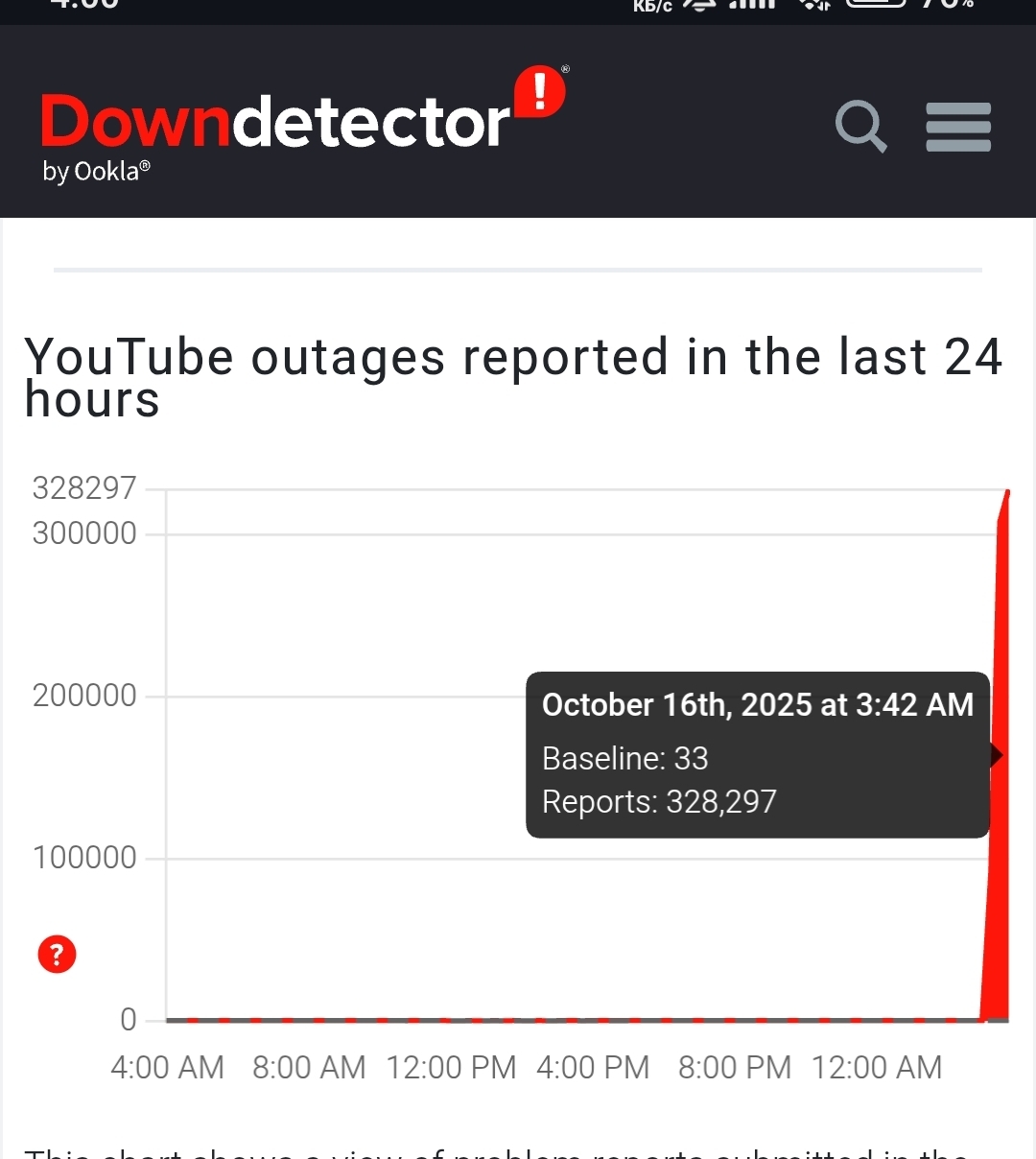 2 Hopar666 Баяны YouTube сдох. За час более 300.000 репортов со всего мира 1 месяц назад https://downdetector.com/status/youtube/ YouTube Сбой 1 Ещё 0