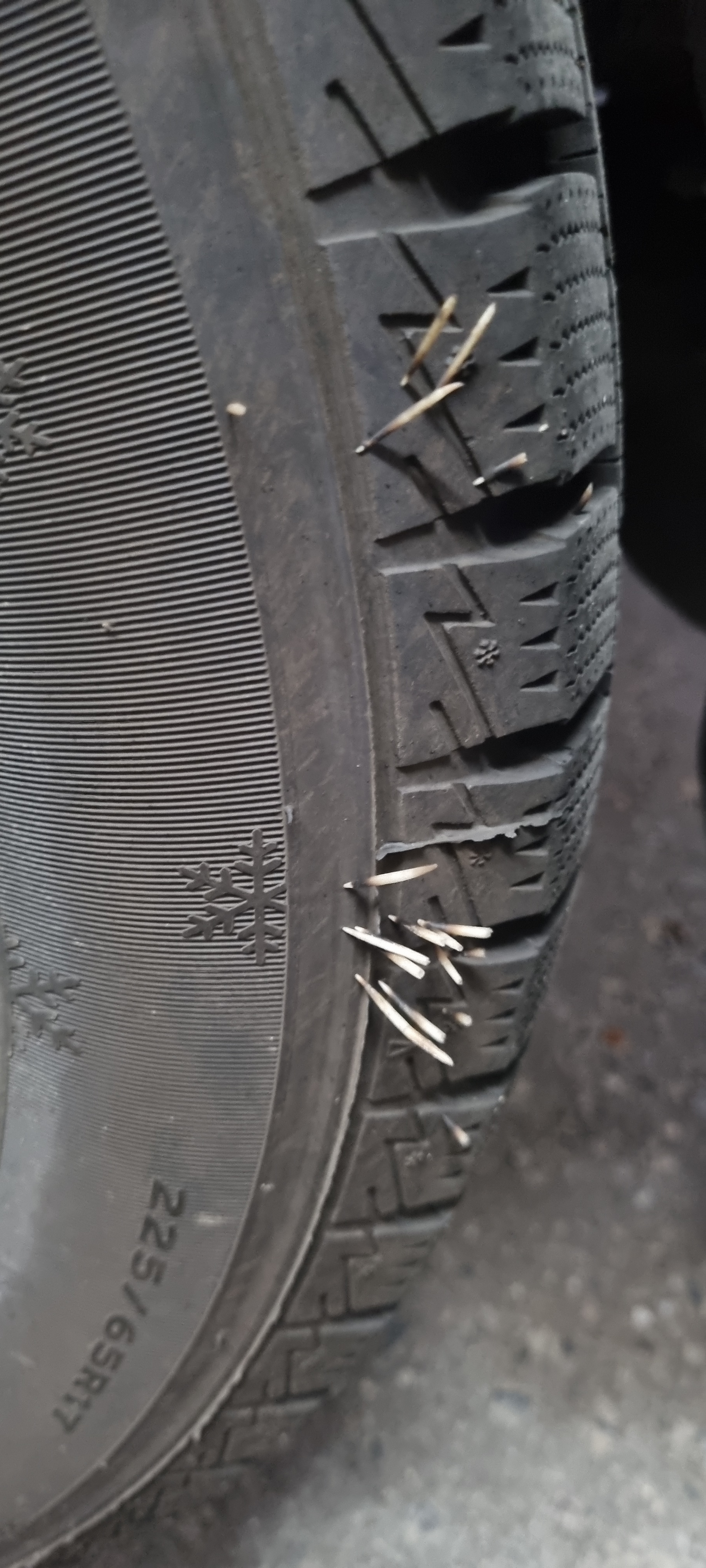 И вот, перегружая вещи с одной в другую, замечаю на заднем колесе подменного авто такое.
