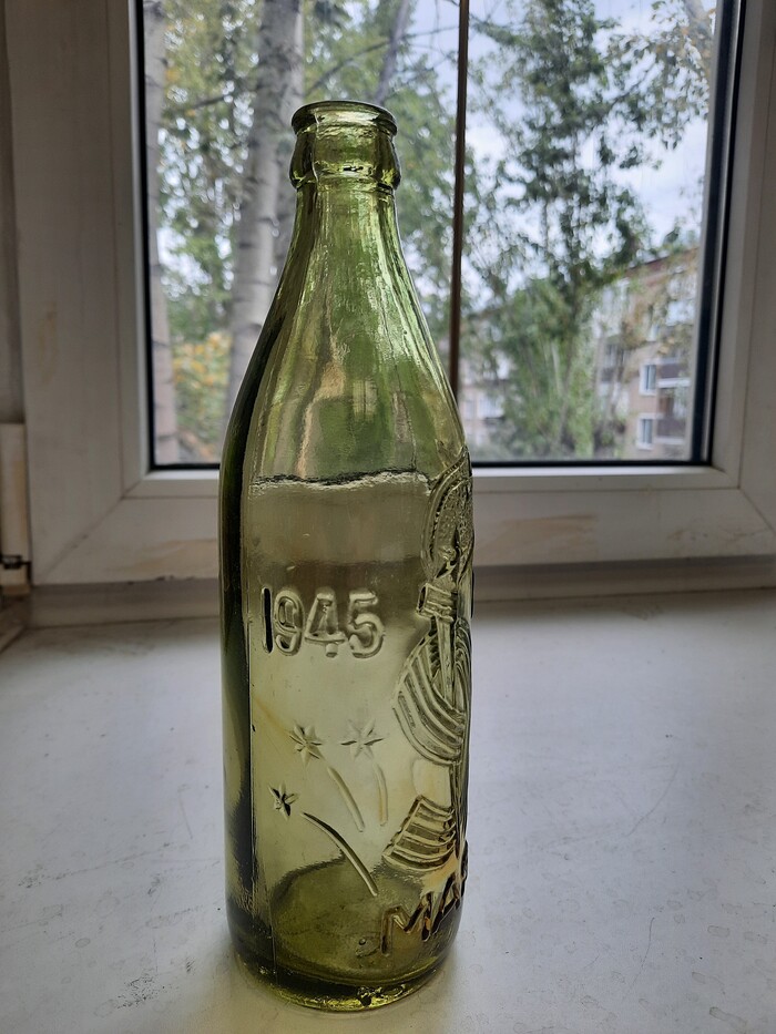 Вот такая красивая бутылка, вышла к 40 летию Победы на Песковском заводе стеклоизделий. Завод был расположен на севере Киевской области. Он был одним из основных поставщиков стеклотары для пищевых предприятий столицы УССР. Помимо всего прочего, завод выпустил целую плеяду юбилейных бутылок. Эта одна из самых красивых.