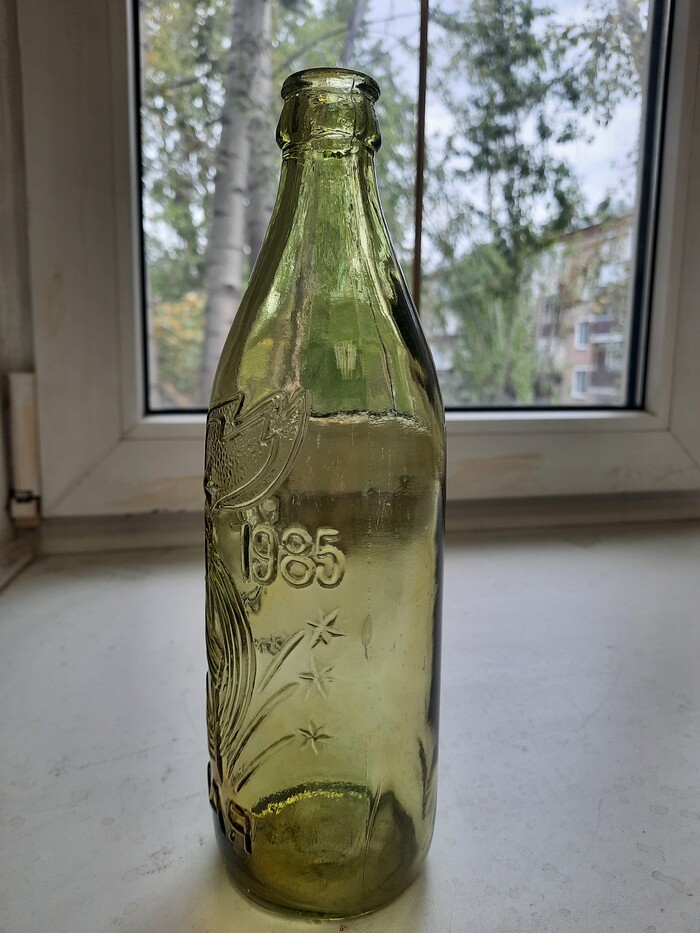 Не знаю почему, но еще с детства такой цвет бутылок - а он был достаточно редким в общей массе стеклотары - мне нравился больше всего. Помню, когда выбирал газировку из горы сложенных друг на друга платковых ящиков с бутылками, я пытался найти заветный салатовый цвет. Поэтому салатовая юбилейная особо приятна.