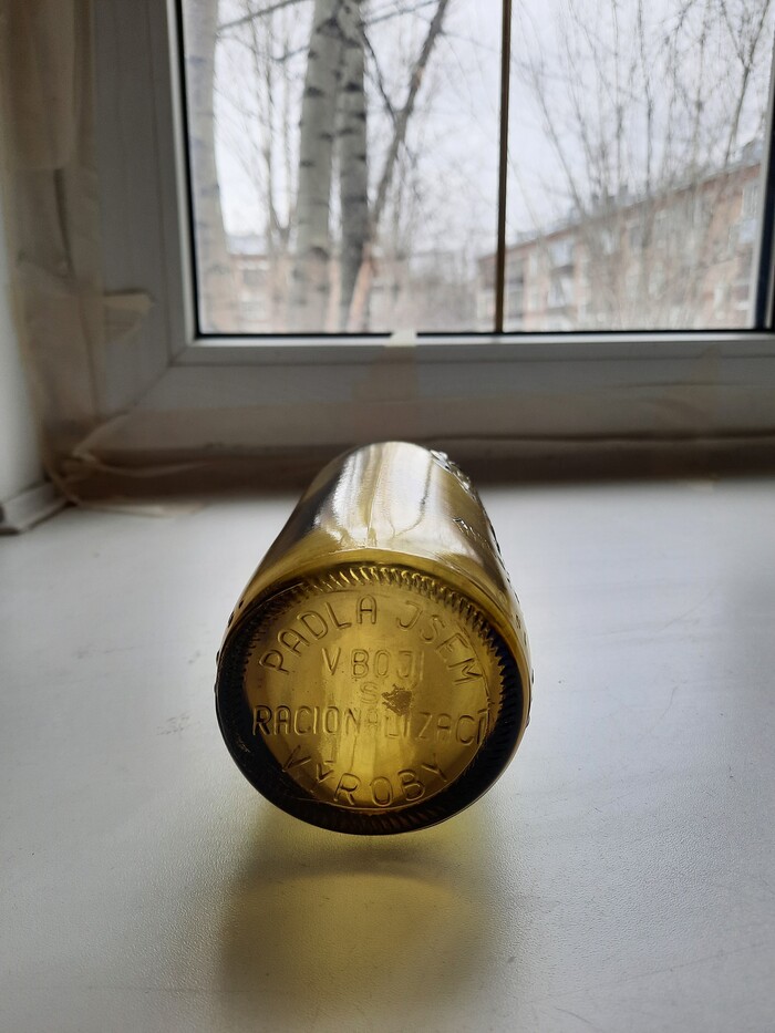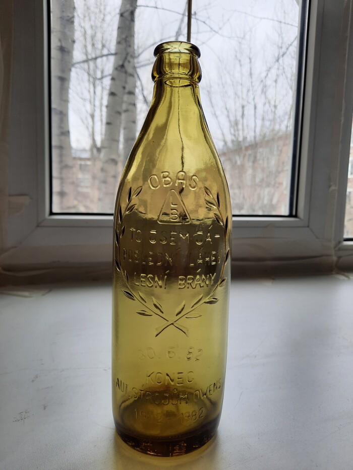 Кстати, всего было выпущено три салатовые юбилейные бутылки. Причем одна из них в Чехословакии по случаю закрытия пивоваренного завода. Вот она
